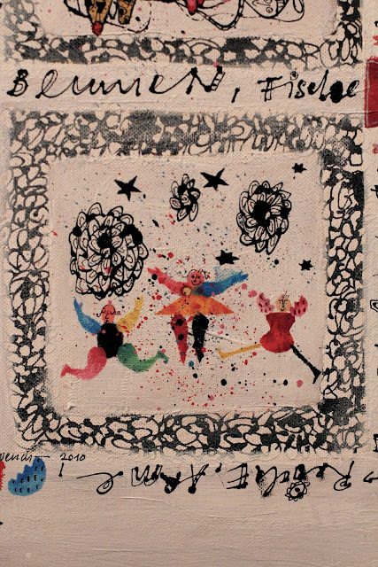 Schöne Bilder sind ein wichtiger Komponent bei der Einrichtung und ich bin ein grosser Fan von der Kunst Jolandas (die auch eine gute Freundin ist). War dann auch enttäuscht, als bei meinem Favorit gleich ein roter Punkt mit verkauft markiert wurde. Und staunte dann mit grossen Augen als mein lieber Mann sich als der Käufer enpuppte. Das Bild sei mein Weihnachtsgeschenk. Ist dass nicht schön? Freue mich schon drauf, mein Wohnzimmer mit dem Bild Angel & Friends zu schmücken.