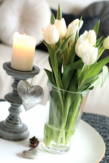Obwohl er noch nicht da ist, der Frühling, möchte ich nach den Festtagen zumindest das Gefühl von Frühling im Haus haben. Es braucht nur wenige Veränderungen für das Frühlingsgefühl und für mich gehören helle Farben wie Pastell und viel weiss dazu. Helle Kissen für das Sofa, weisse Vorhänge und Blumen. Auch bei den Blumen ist weiss mein Favorit. Liebe den Kontrast von schwarz, grau und weiss zusammen mit Erdtönen, Holzfarben und weisse Blumen dazu. Und von Blumen kann ich nicht genug bekommen um diese Jahreszeit. Tulpen, Rosen oder Hyazinthen sind einige meiner Favoriten.