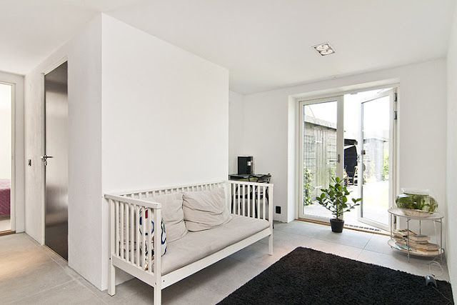 Einfach, schlicht und mit einer Sitzgelegenheit präsentiert sich hier den Eingangsbereich