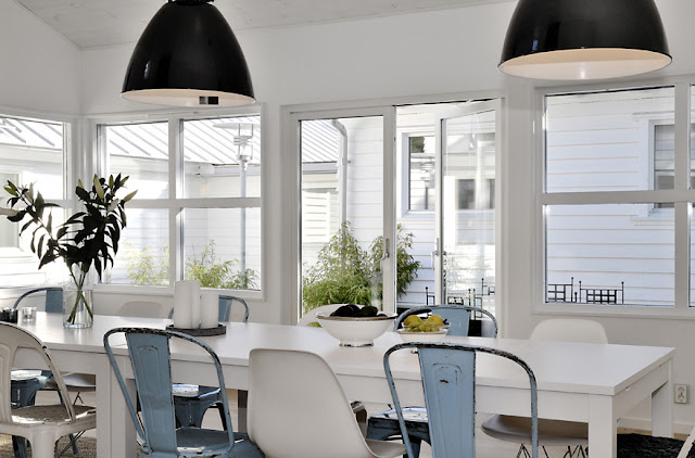 Starten wir doch die Woche mit einem Traumobjekt in Südschweden. Die Villa ist hell, modern und doch sehr gemütlich. Beachte die Esszimmerstühle in verschiedenen Farben, das blau finde ich sehr schön und gibt dem Raum eine frische Note. Und die Marrakeschfliesen im Badezimmer…. finde ich einfach toll (wenn ich heute mein Badzimmer umbauen würde, dann mit Marrakeschfliesen).