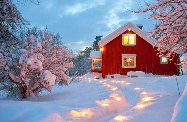 Wünsche einen gemütlichen und besinnlichen Vorweihnachtssonntag mit diesem wunderschönen Bild. So sieht’s in meiner Heimat aus, kleine rote Holzhäuschen (Torp). Idyllisch!
