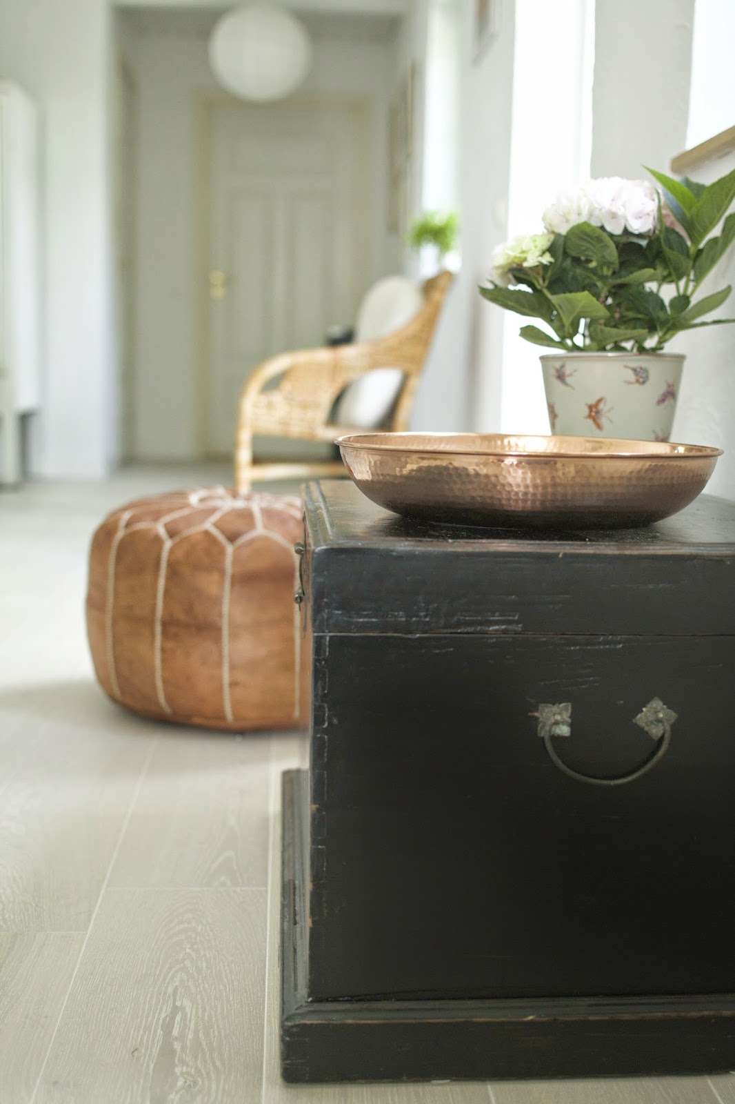 Zuerst waren wir bei meiner Schwester und ihrer Familie in Skåne, Südschweden. Sie wohnen in einem wunderschönen Haus, etwa 40 Minuten mit dem Auto von Malmö entfernt. Ländlich, mit einem Pferdestall und von wunderschönen Wiesen umgeben. Im Frühjahr haben sie, mit meiner Unterstützung, das Erdgeschoss umgebaut und neu eingerichtet. Es sieht einfach Klasse aus! Es war vorher eher dunkel und eine Mischung aus vielen Materialien. Holzboden, Fliesen, viele Balken im dunklen Holz, mit einem Rotstich, und lasierte Täfer. Ein neues Fenster wurde eingebaut, um mehr Licht im Raum zu bekommen und alles wurde weiss gestrichen. Zudem wurde ein weiss lasierter Eichenparkett verlegt.