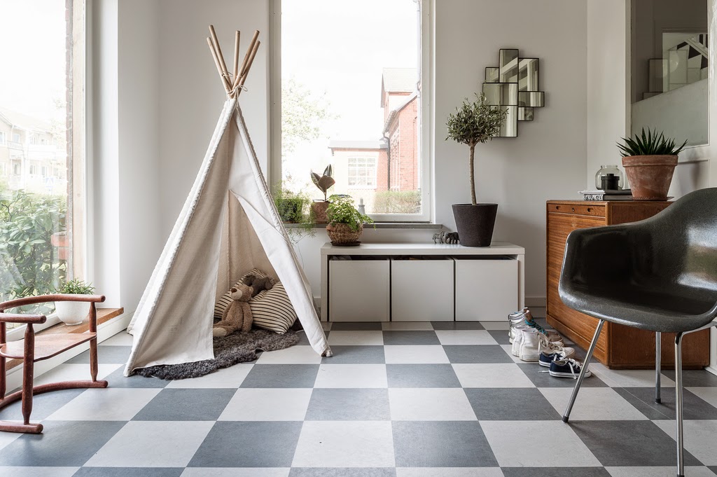 Und heute besuchen wir nochmals ein tolles Haus in Südschweden. Eine umgebaute Schreinerei in Rydsgård. Die Fassade sehr typisch für Südschweden mit roten Ziegeln. Im Haus drinnen finden wir eine offene Raumaufteilung, hell und freundlich. Der Übergang von Küche zum Essplatz wurde mit dem Erhalt des roten Zielwandes klar markiert und gibt dem Raum einen persönlichen Charakter. Auch die Küche ohne Wandschränke wirkt luftig und mit verleiht dem Haus einen gewissen Industriecharakter.