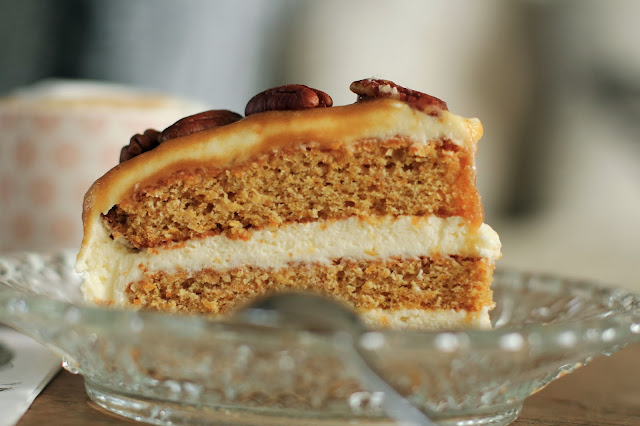 Schwedische Rüeblitorte mit Limettenfrosting, Karamellsauce und Pecannüsee