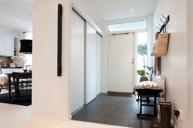 Hier ein kleines Haus in Südschweden mit einer sehr gelungen Inneneinrichtung mit ausschliesslich weiss, schwarz und Brauntönen.
