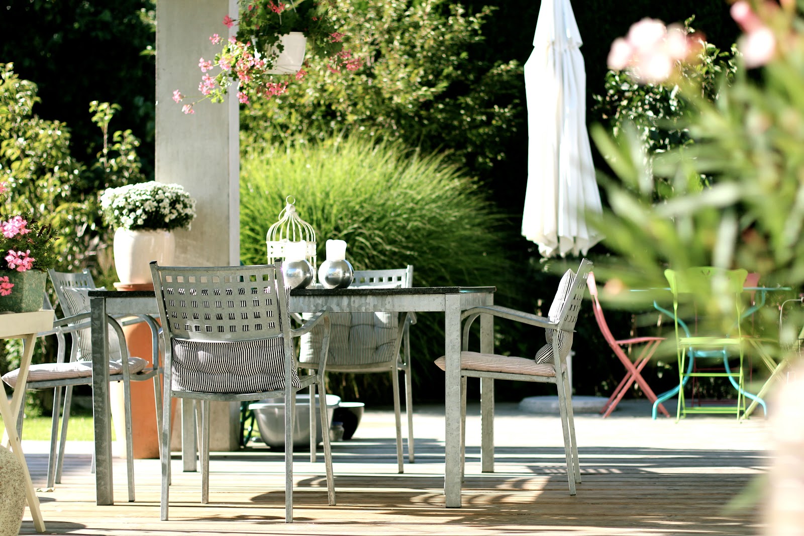 Heute träumen wir doch ein bisschen von den Sommer… Wenn es draussen noch Schnee hat kann man sich nur schwer vorstellen, dass bald wärmere Tage kommen und das Haus um ein Zimmer grösser wird. Die Terrasse. Heutzutage werden Aussenräume als eine Erweiterung des Hauses angesehen und dementsprechend gestaltet. Loungesofas, Liegeplätze und einen Grillplatz dazu. Ich habe nur einen sehr kleinen Garten aber trotzdem drei Sitzplätze. Und kaum ist es Frühling fängt die Gestaltung der Terrasse an. Welche Pflanzen haben den Winter überlebt? Pflanzen zurückschneiden, neue Kissen beim Sitzplatz, Blumen in grossen Töpfen und das Outdoorliving kann wieder anfangen. Dieses Jahr möchte ich einige Neuerungen bei den Pflanzen und bin schon am überlegen, wie es aussehen soll. Mehr dazu hier auf dem Blog sobald es wieder wärmer wird.