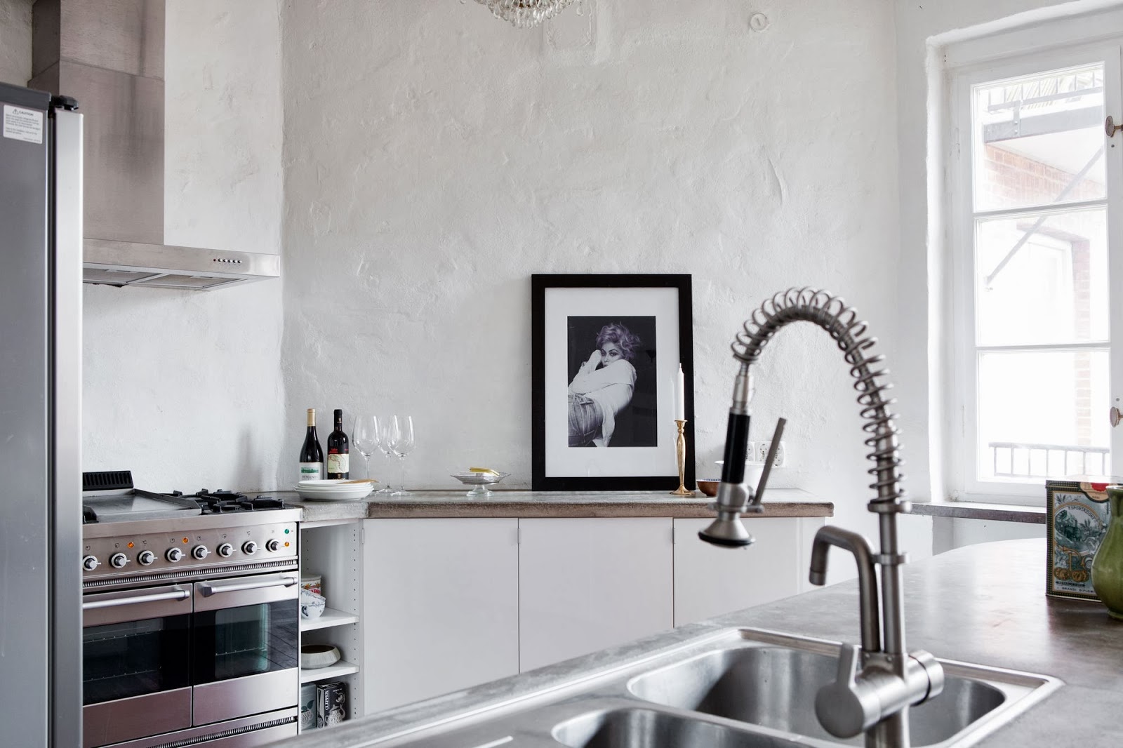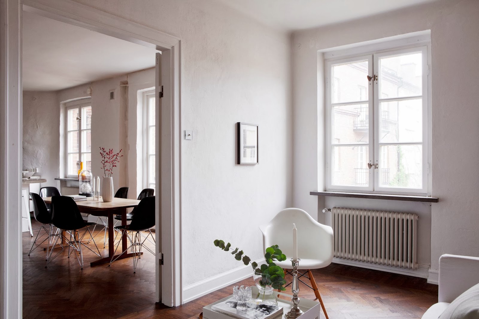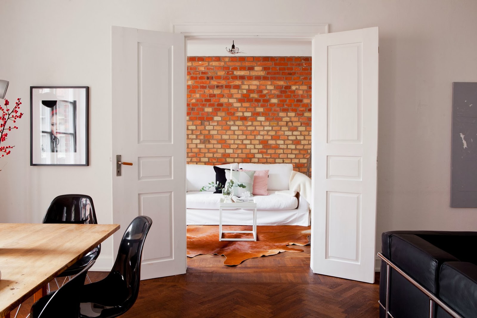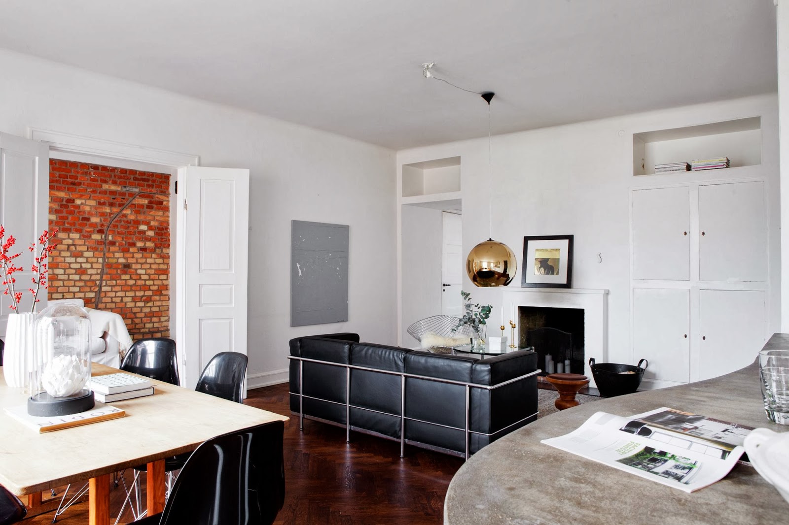 Aber zuerst schauen wir eine tolle Jugendstil Wohnung in Malmö, Südschweden an. Viel weiss und schwarz und mit einer schönen Wand aus Ziegelsteinen. Gibt zusammen mit dem Holzboden eine warme Wohnatmospähre. Ist schon was spezielles mi Ziegelsteinen finde ich.