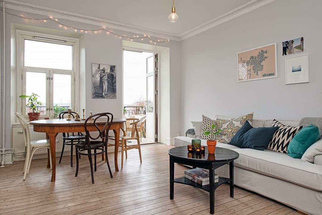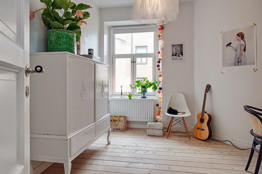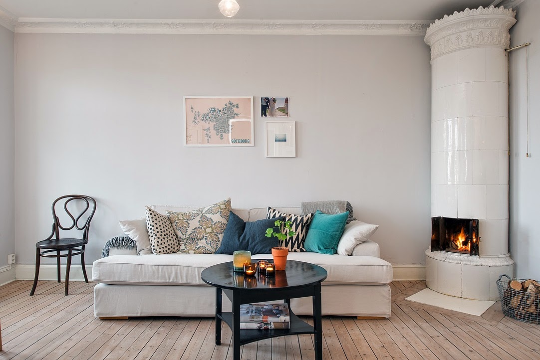 Heute zeige ich eine Jugendstilwohnung aus Göteborg, die sehr persönlich und mit viel Liebe zum Detail eingerichtet ist. Designmöbel hin oder her, am wichtigsten ist es, eine persönliche Wohnatmosphäre zu gestalten. Mir gefällt es am besten in Wohnungen und Häusern, wo gelebt wird und nicht alles wie aus dem Einrichtungsmagazin aussieht. Bei dieser Wohnung spürt man, dass gelebt wird. Eine schöne Mischung von neu und alt und sehr gemütlich! Die Küche in graublau finde ich Klasse, mal etwas anderes als weiss und den Smeg Kühlschrank ist mein absoluter Favorit. Wenn unser Foodcenter mal den Geist aufgeben sollte (muss aber nicht grad heute oder morgen sein, hat eine schöne Stange Geld gekostet), dann möchte ich auch so einen!