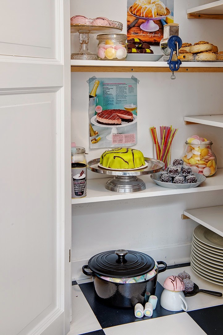 Geniessen wir bei dem Grau ein bisschen Helligkeit bei einer schönen Jugendstilwohnung in der westschwedischen Metropole Göteborg. Verspielt, hell, weiss und mit Naturfarben ergänzt. Dazu ein Schrank voll mit Süssigkeiten, da würde ich nicht nein sagen.