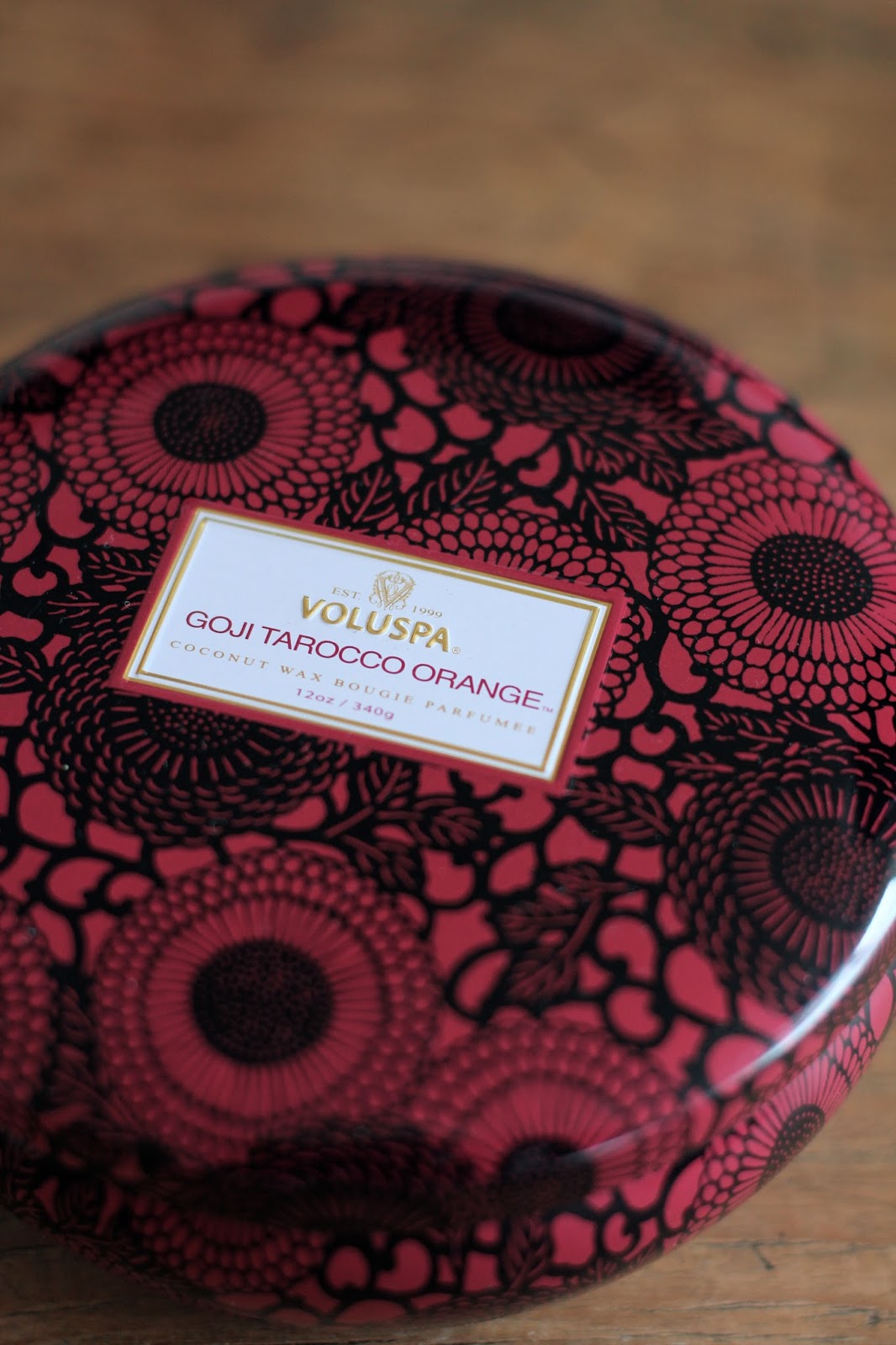 Ich bin eine grosse Liebhaberin von Duftkerzen und Raumdüften geworden. Aber nicht diesen penetranten, starken Düften, wo man nur die Nase rümpfen muss. Nein milde, cremige und natürliche Düfte, die dem Raum eine frische Note verleihen. Jetzt habe ich meine absolute Favoritmarke im Globus gefunden – Voluspa! Duftkerzen in wunderschönen Verpackungen und Raumdüfte, der einte besser als der andere. Und alles zu einem erschwinglichen Preis. Ich habe mich diesmal für Goji & Tarocco Orange entschieden. Duftet himmlisch! Bin schon fast süchtig danach und die Kerze ist auch sehr schön als Dekoration auf einem Sofatisch oder einer Kommode.
