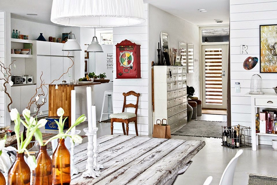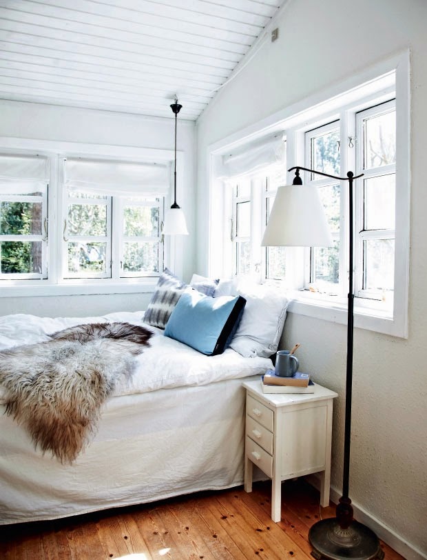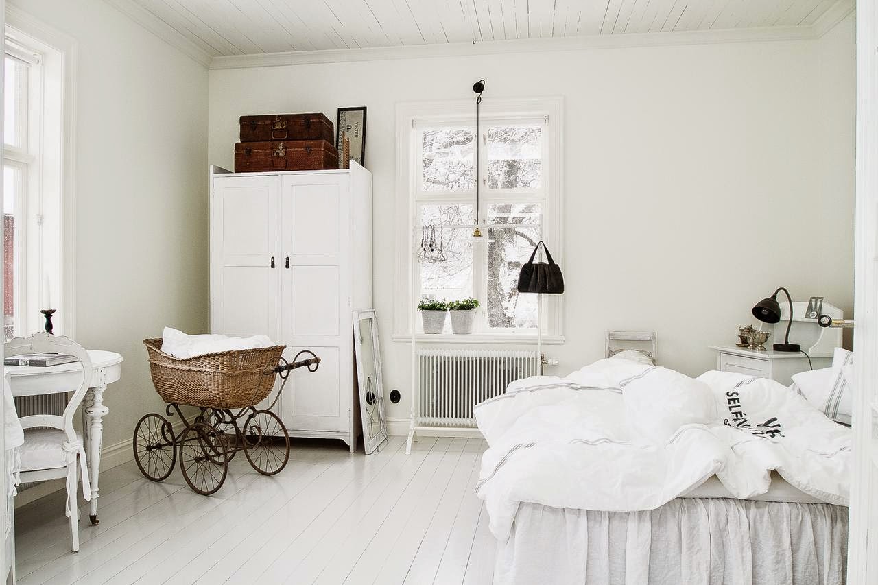 Obwohl ich mein eigenes Zuhause wohl nicht ganz so weiss einrichten würde – finde ich es zum anschauen unglaublich schön. Eine weisse Einrichtung strahlt Ruhe aus und wirkt sehr harmonisch. Mit Naturmaterialien ergänzt wirkt das ganze auch wohnlich und gemütlich. Ich hätte hier noch einige Pflanzen und Blumen reingestellt, um die Energie im Raum zu steigern. Der weisse Schrank erinnert mich daran, dass ich auch zwei alte Schränke habe, die ich endlich mal anmalen sollte!! Wohnprojekte hat es bei mir immer genug!
